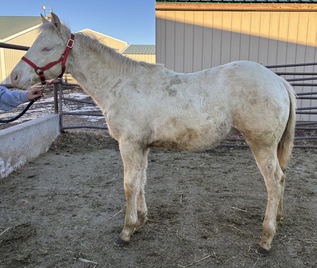 “Casper” is an AQHA cremello dun colt born June 20, 2025. He is out of our AQHA mare Golden Pecos Peppy and by the stud Flying Prince Dun It. He is halter broke and super sweet. We are beginning to work with his feet as well. He comes from bloodlines packed full of reining, cowhorse, and ranch working horses. His mom is a palomino mare, and his dad is a grullo. If he is kept as a stud, he will be a color producer! We believe he may be dun (he has not been color tested), and he carries two cream genes, so you are guaranteed a cream based foal. These include, palomino, buckskin, or smoky black depending on what color mare he is paired with.